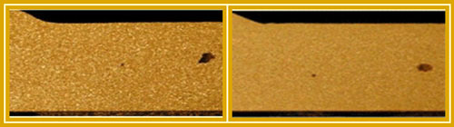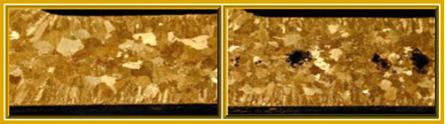 A gauche, l' alliage B2 oxydant, à droit, l' alliage B2 avec Desofin affinage du grain
